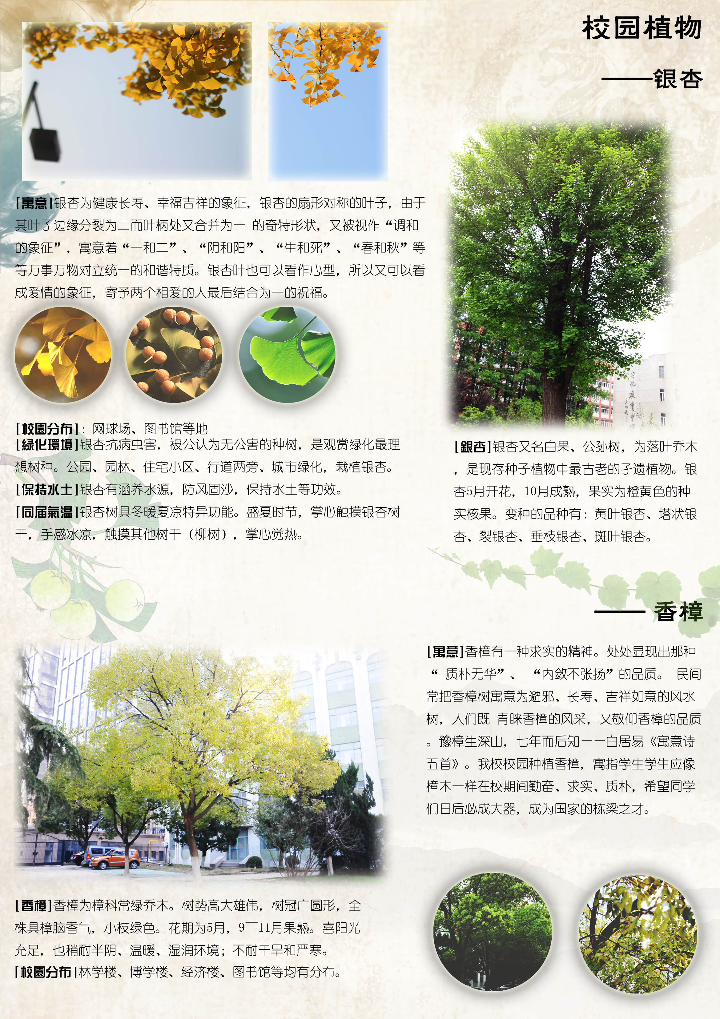 本次园林文化通过大量的展板将学校内的常见园林树种进行了系统介绍。展板重点展示园林植物整体和局部的照片,用浅而易懂的文字介绍树种的特征、相关药用价值、园林用途等信息,图文并茂。学校师生在观赏植物的同时学习植物方面知识。