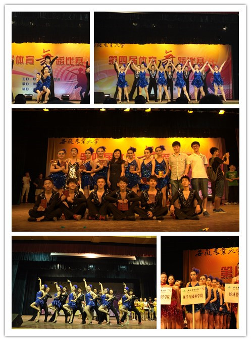 本网讯:2014年6月8号,第四届体育舞蹈大赛在大礼堂举行。校体育部相关专业老师担任此次比赛的评委,我院唐红萍书记也莅临赛场给我院选手加油鼓气。我院选手经过下午的激烈角逐,奉献了他们精彩的舞姿,一路过关斩将,成功挺进决赛赛场。决赛中,虽然竞争愈发激烈,但我院选手勇往直前,直面挑战,自信的舞蹈在华美的舞台上。最终,我院荣获团体第二的佳绩。我院选手们在单人舞和双人舞中也有不俗成绩,他们分别斩获女子单人恰恰第五,女子单人伦巴第六,双人牛仔第二、第六以及拉丁三项第三的好成绩。