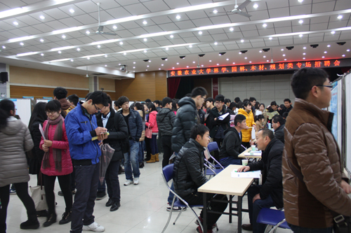 招聘会现场热闹非凡却有井然有序,用人单位提供岗位覆盖学院林学、木材、园林和城市规划等全部四个专业。同学们拿着简历,有的和用人单位侃侃而谈自己的理想,有的虚心地请教着自己的不足和改进方向,还有的排着队等待着和自己心仪岗位的交流。