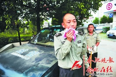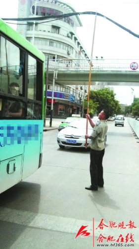 本网讯 2013年7月16日早晨,在霍山路大学生公寓门口附近,一束通信电缆被强风吹落距离地面仅一米多,来往的机动车无法通行,三名城管队员见状,用折叠杆撑起电缆一个多小时,直到维修人员赶到。这一幕被附近的市民用手机拍摄下来发了微博,引来众多博友进行了转发和评论,三名城管队员被网友亲切地称为“撑杆哥”。