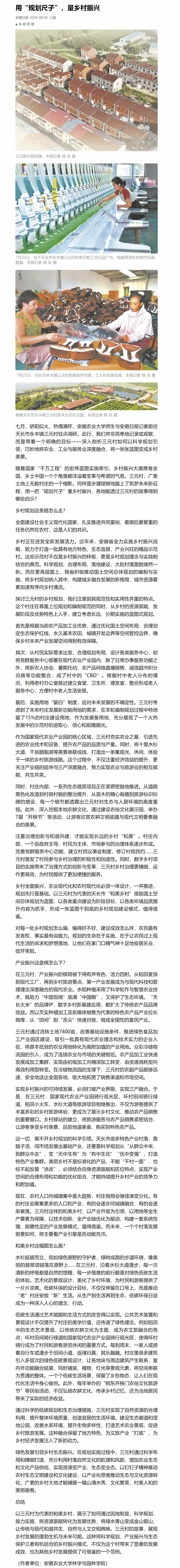 近期,安徽日报客户端刊发了朱萌、郑婕老师的调研报告《用“规划尺子”量乡村振兴》。