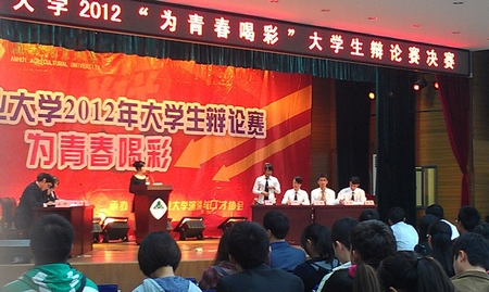 本网讯 在我校2012“为青春喝彩”大学生辩论赛上,林学与园林学院辩论队过五关斩六将,在10月17日的决赛中,以微弱优势战胜园艺学院并夺得冠军,11城规叶琪同学摘得本届比赛的“最佳辩手”称号。