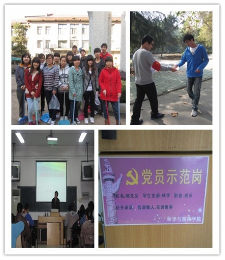 10月23日起,林学与园林学院以宿舍为依托开展了“党员先锋岗入宿舍”活动。党员们作为一支主力军,秉承着“我是党员,我奉献,我快乐”的宗旨亮出党员身份,同时选派优秀党员联系新生宿舍,从卫生、安全等方面给予新生生活及学习方面的指导和敦促,全面发挥了党员的先锋模范作用,以实际行动“创先争优”。