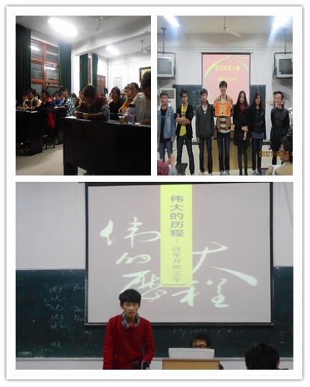 十月底,林学与园林学院结合学生处十月主题班会的内容及校团委读书风采大赛的要求,组织各班级开展“我眼中的……”主题班会。班会以科学发展观为理论指导,以观察身边人事物十年来翻天覆地的变化为内容,通过ppt汇报和角色扮演、话剧表演等形式,结合理论知识,让学生通过自己的双眼感受祖国在党的领导下发生的变化 ,从而引导大学生统一思想、凝聚力量,坚定不移走中国特色社会主义道路,为全面建成小康社会而努力学习、奋发成才。