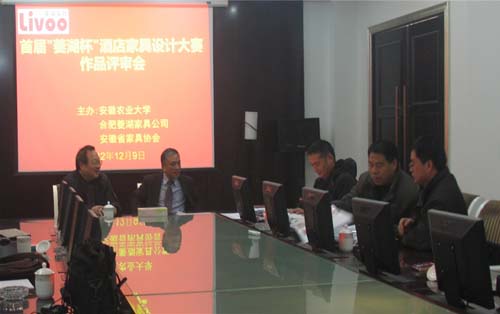 本网讯:2012年12月9日,在合肥菱湖家具集团有限公司会议室举行了安徽农业大学首届“菱湖杯”酒店家具创意设计大赛评审会,大赛组委会邀请了合肥工业大学,安徽农业大学,合肥菱湖家具集团有限公司的7位专家作为评委。评审会本着公平、公开、公正的原则,在众多优秀设计作品中评出了一等奖1名,二等奖2名,三等奖3名,优秀奖10名,鼓励奖10名。淮南师范学院凡存存作品《古韵.钱币》获一等奖; 安徽农业大学王明宇作品《凤舞九天》、合肥菱湖家具有限公司李艳华作品《新古典之风》获二等奖;中南林业科技大学陈飞作品《莲藕》、淮南师范学院肖涛作品《如意吉祥》、淮南师范学院谷静作品《园趣》获三等奖.