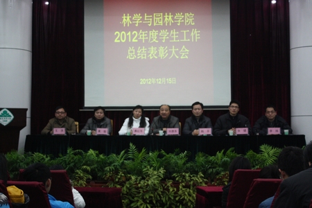 本网讯 为鼓励先进,促进全院学生德智体美全面发展,12月15日上午,林学与园林学院在林学楼报告厅召开2012年度学生工作总结表彰大会。校学工部(处)处长刘惠东、校招生就业处处长韩平、校团委副书记张健、林学与园林学院党委书记唐红萍、副院长黄勃、院党委委员、林学系党支部书记王滨出席了此次表彰大会,学院部分辅导员和学生代表参加了会议,会议由院党委副书记李玮主持。