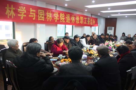 本网讯:12月19日下午,阳光灿烂,林学楼二楼会议室笑语盈盈,林学与园林学院退休教工茶话会正在举行,学院党政领导与学院55名退休教职工共叙情意。