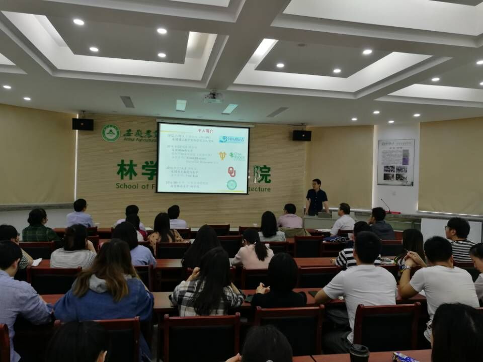 本网讯 5月10日下午,我院学术论坛邀请南京林业大学姜姜教授和中国林科院林化所刘玉鹏副研究员在林学楼二楼报告厅开展学术交流,分别做了题为《植物-土壤反馈与生态系统稳定性》和《林业生物质化学利用与产业发展形势》的精彩报告,报告由林学与园林学院副院长徐斌主持,院党委书记唐红萍,学院老师和研究生参加了此次讲座。
