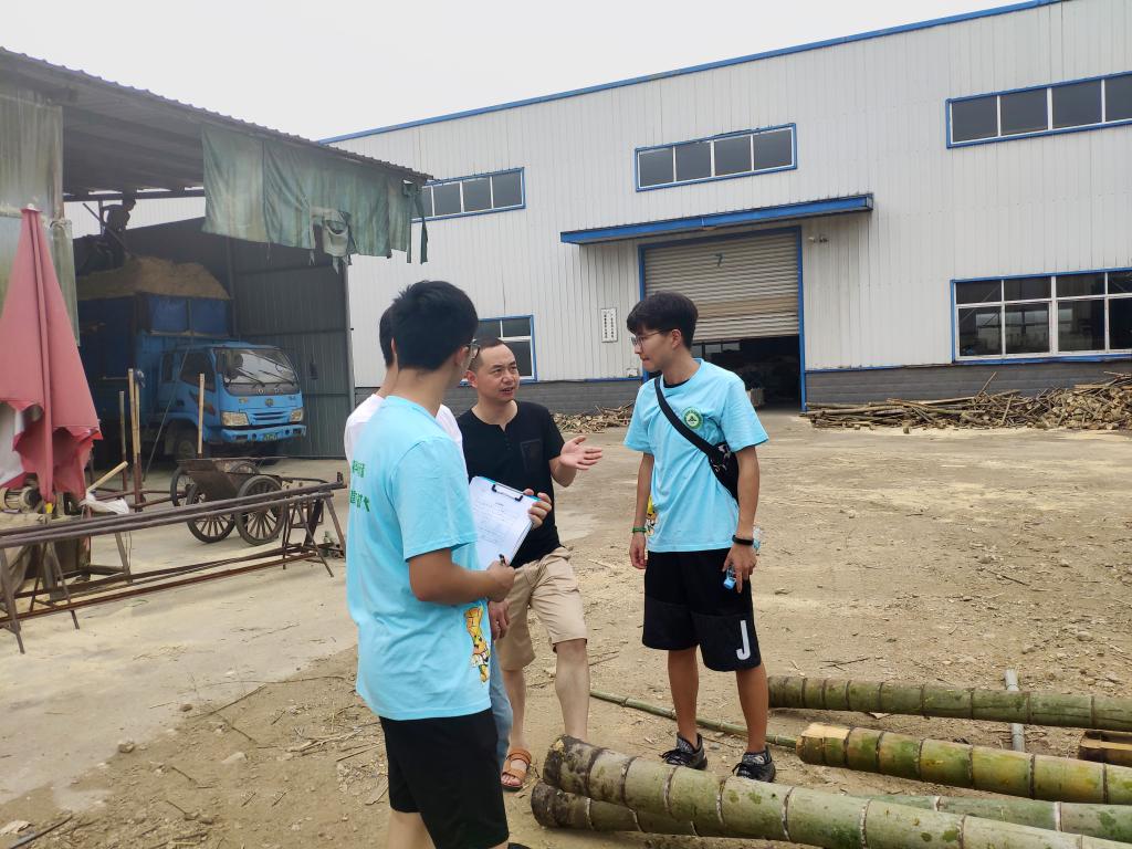 赴诸佛庵镇暑期社会实践团的成员实地考察竹资源的利用现状,了解近年来当地竹资源取得的成效和存在的不足。他们走进茅山林场,了解毛竹的自然生长情况;调研制碳厂和制竹纤维厂,了解竹子的药用价值和其他附属价值;深入制作生物质颗粒的企业,了解生产工艺,对于竹材料新的用途有了新的认识。