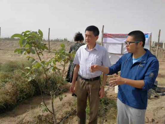 本网讯 8月29日,安徽省科技厅党组书记、厅长宛晓春一行来到新疆和田地区皮山县检查指导我院李义勇博士主持的援疆项目“和田地区核桃生态及丰产栽培技术研究与示范推广”基地。正在基地现场培训的我院博士研究生王兆成(导师为傅松玲教授)汇报了项目基地建设、技术培训等进展工作。