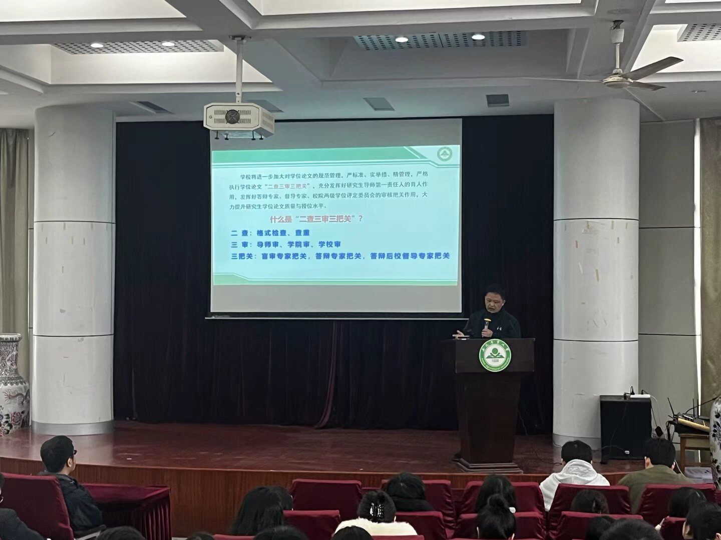 3月13日下午,林学与园林学院在林学院一楼报告厅举办研究生论文撰写标准及就业形势解读专题讲座,院党委副书记陈枫、副院长张龙娃分别围绕就业形势与求职技巧、毕业论文规范进行分享,2025届全体研究生毕业生参加活动。