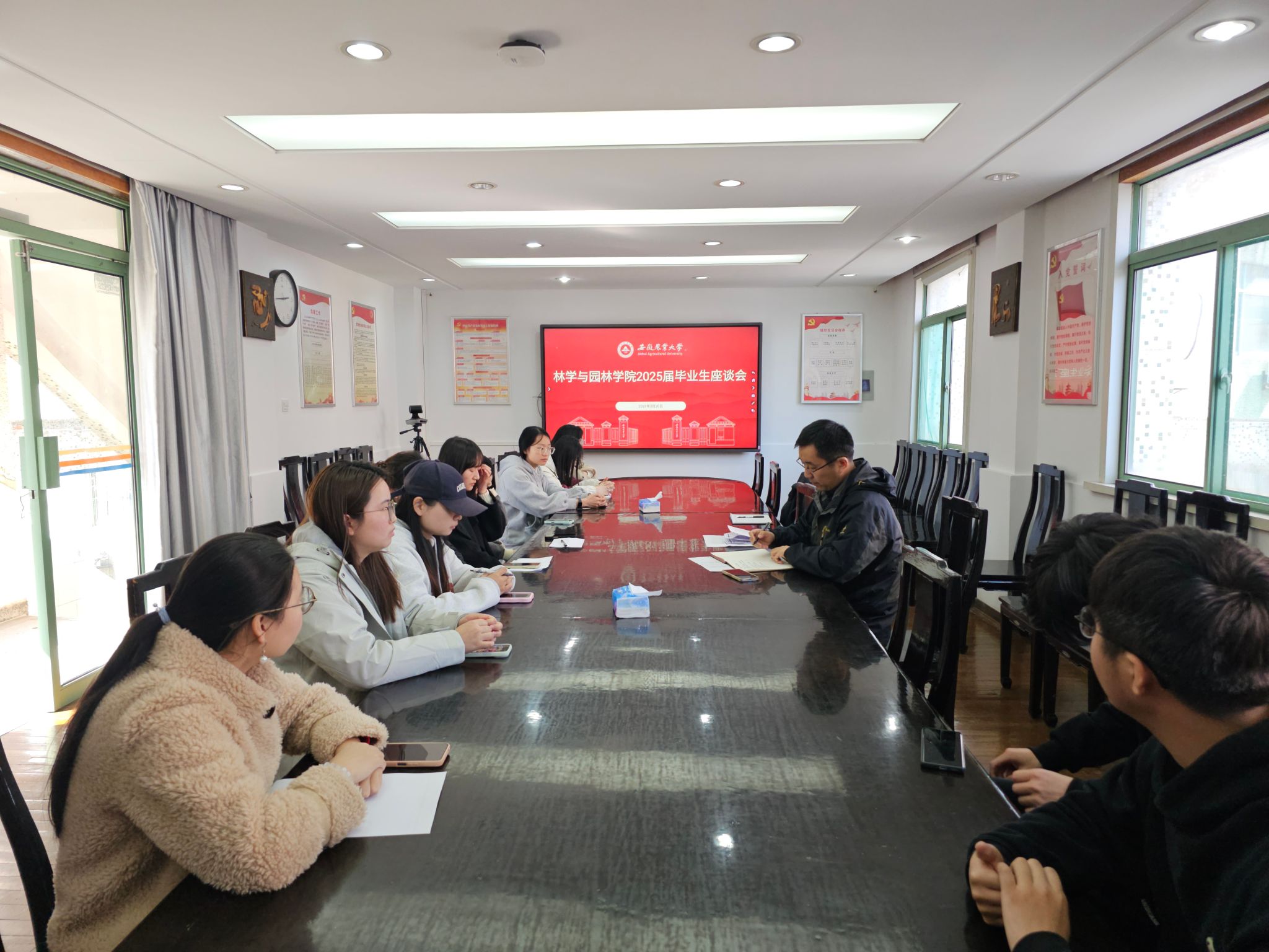 为扎实推进2025届毕业生就业工作,精准把握毕业生就业需求,3月20日下午,林学与园林学院在林学楼二楼会议室召开2025届毕业生就业座谈会,学院党委副书记陈枫和各专业毕业生代表参加座谈。