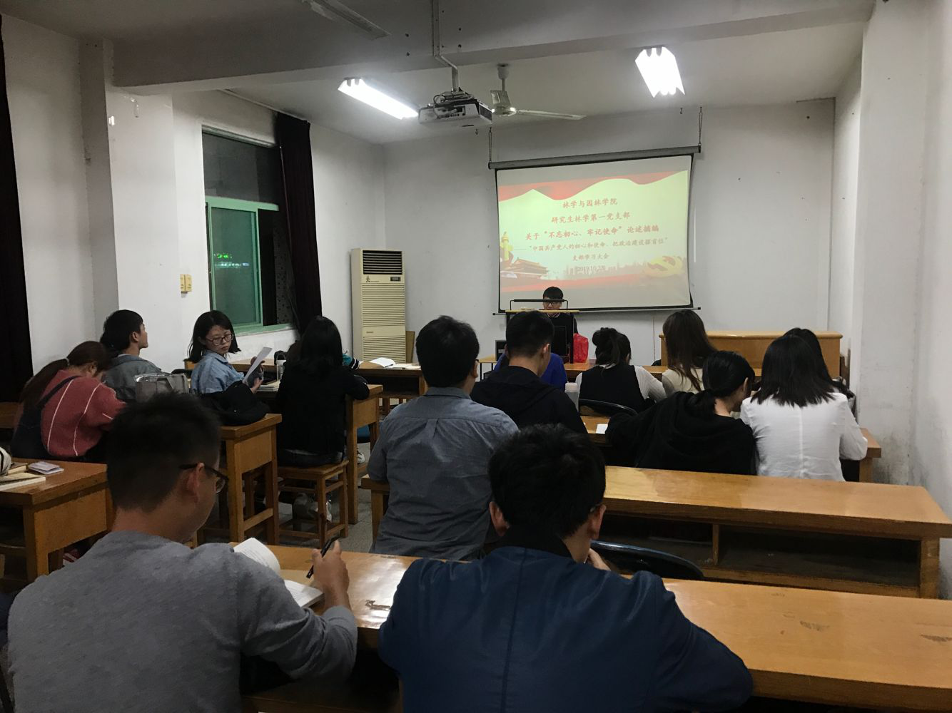 本网讯 为推进“不忘初心、牢记使命”主题教育学习,2019年10月23日,研究生林学第一党支部在林学楼二楼多媒体教室召开关于“不忘初心、牢记使命”主题学习会。