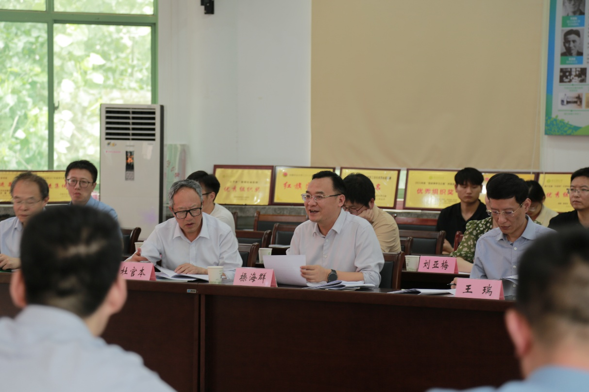 会上,操海群在致辞中向莅临现场的院士专家致以诚挚欢迎和衷心感谢,他指出,承担“江淮分水岭脆弱生态区治理及国家储备林建设研究”课题,既深感荣幸也倍感责任重大。他表示,学校将充分依托院士专家团队的智力优势,以科技之力守护江淮生态屏障,为保障国家生态安全贡献安农力量与“江淮方案”。学校将围绕政策倾斜、资源调配、团队协作等方面构建完善的科研保障体系,确保课题研究、管理及服务保障工作的顺利进行。随后,徐斌详细汇报了项目背景、研究目标、项目内容、课题设置、已完成工作及下一步工作重点等。与会院士及专家针对江淮分水岭脆弱生态区的治理策略以及国家储备林建设研究展开了深入论证,并就如何提升项目成效提出了具有建设性的意见和建议。