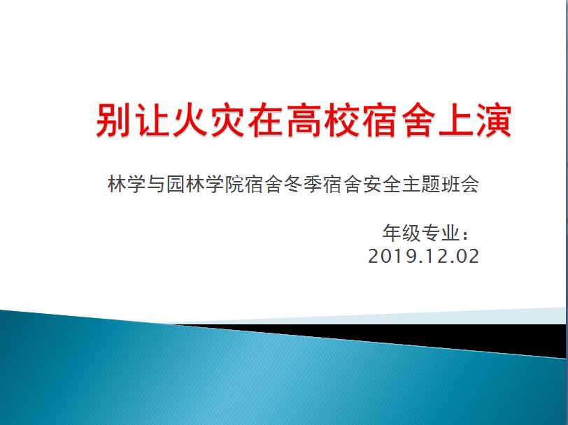 宿舍是学生学习、生活的重要场所,同时也是易引发事故的“重灾区”,冬季来临,宿舍用电安全问题日益突出。12月以来,林学与园林学院组织各年级开展“别让火灾在高校宿舍上演”安全教育主题班会。