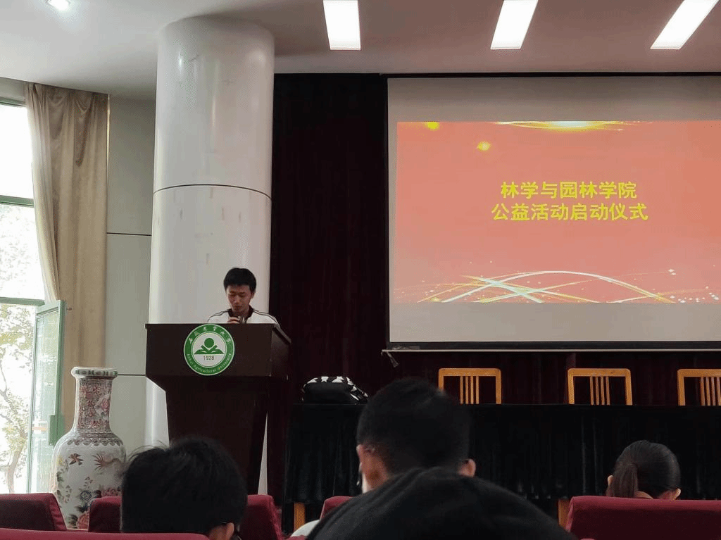 11月6日12点,林学与园林学院院在林学楼一楼报告厅举行了2019-2020学年公益活动启动仪式,院团委老师、院学生会活动管理部及院全体国助生参加了启动仪式。