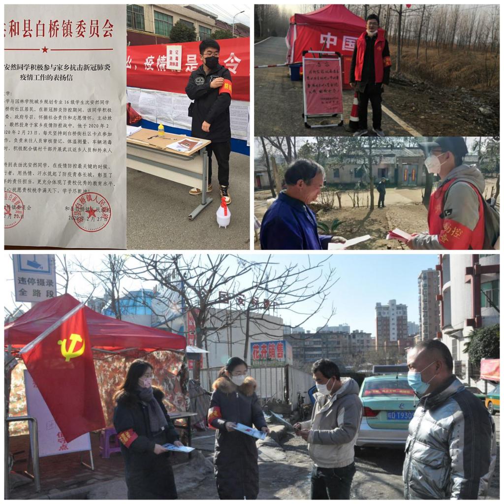 疫情面前,我们是命运共同体,也是责任共同体。我院学子以强烈的社会责任感积极投身疫情防控志愿服务工作,很多优秀同学加入社区防疫工作站,协助当地政府开展健康网格化排查并宣传防疫知识,起到了模范带头作用。