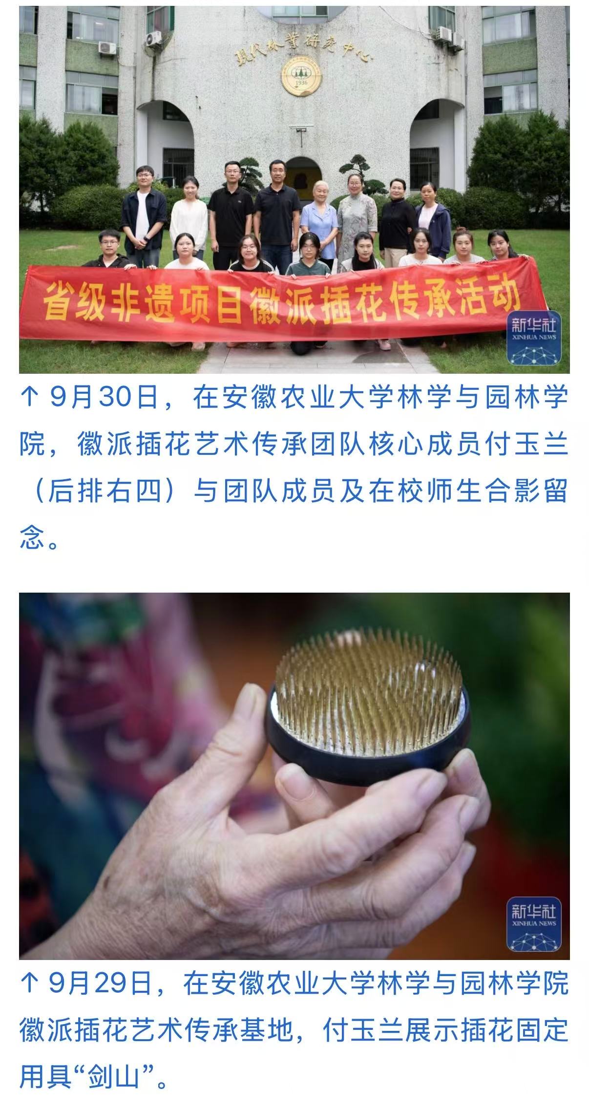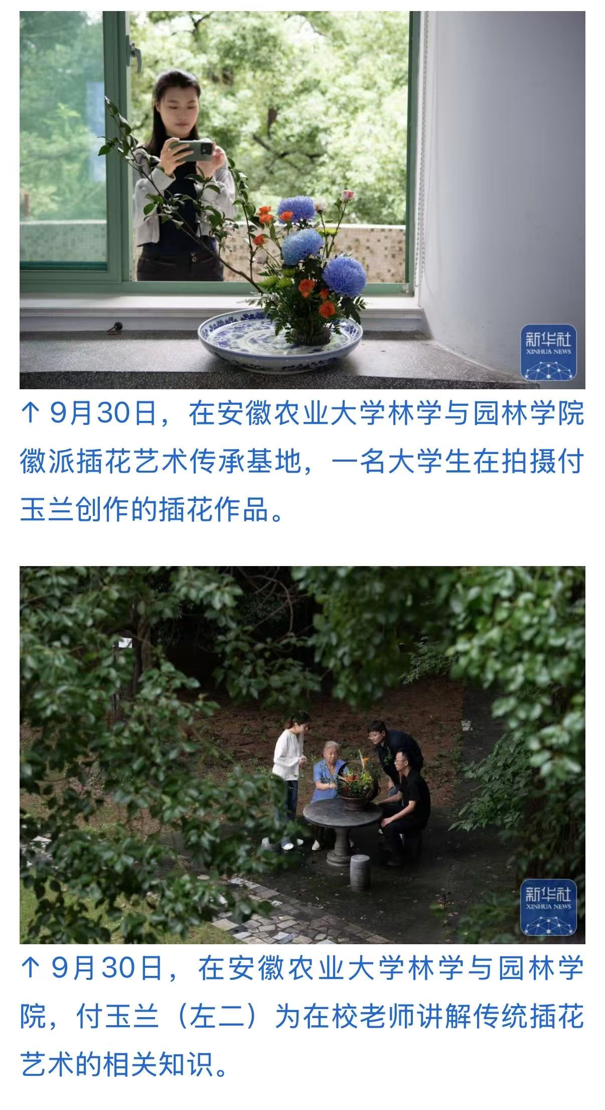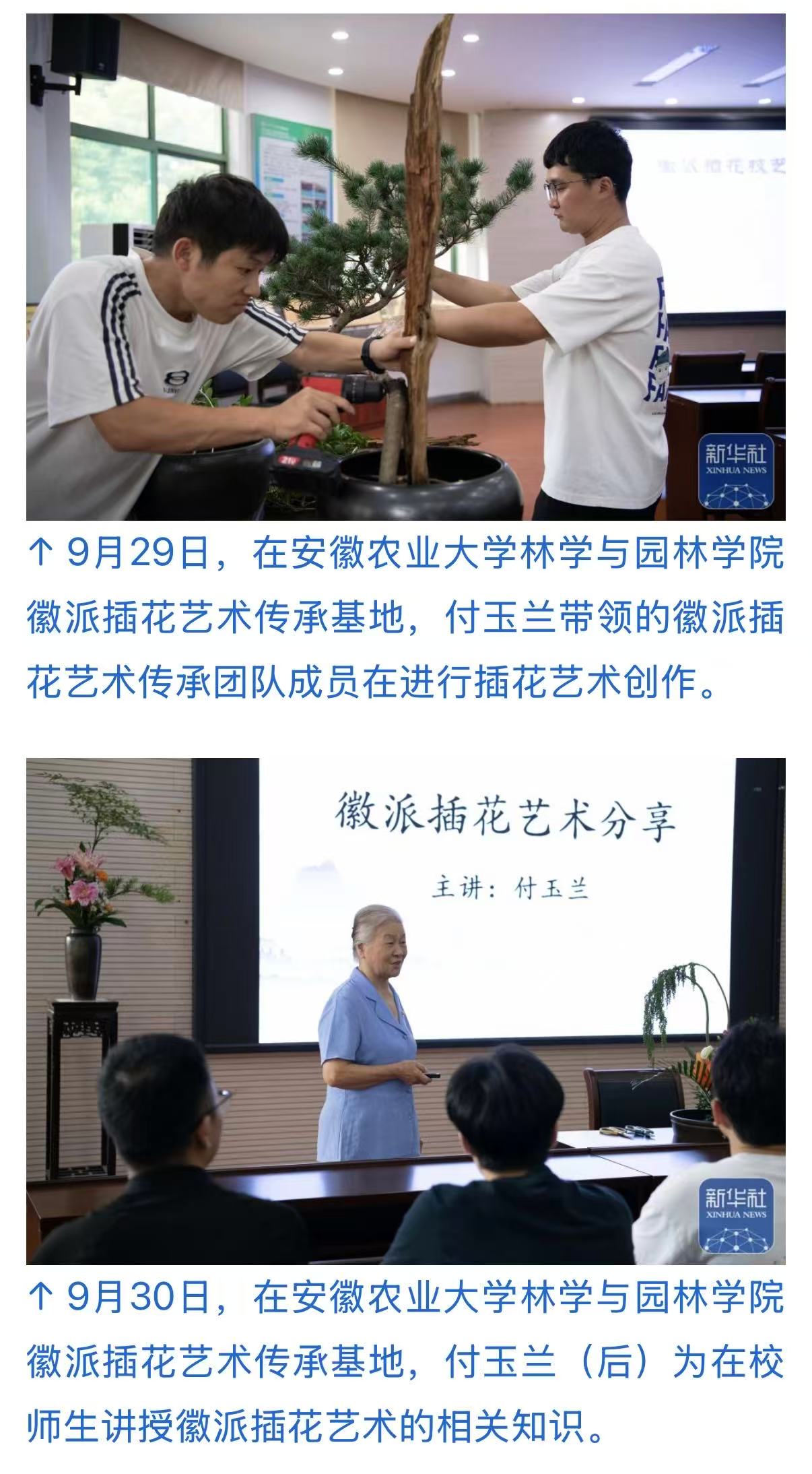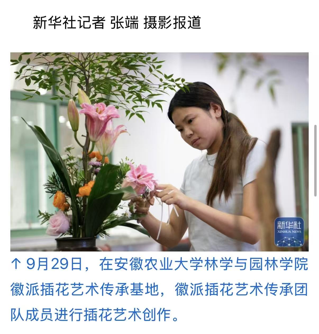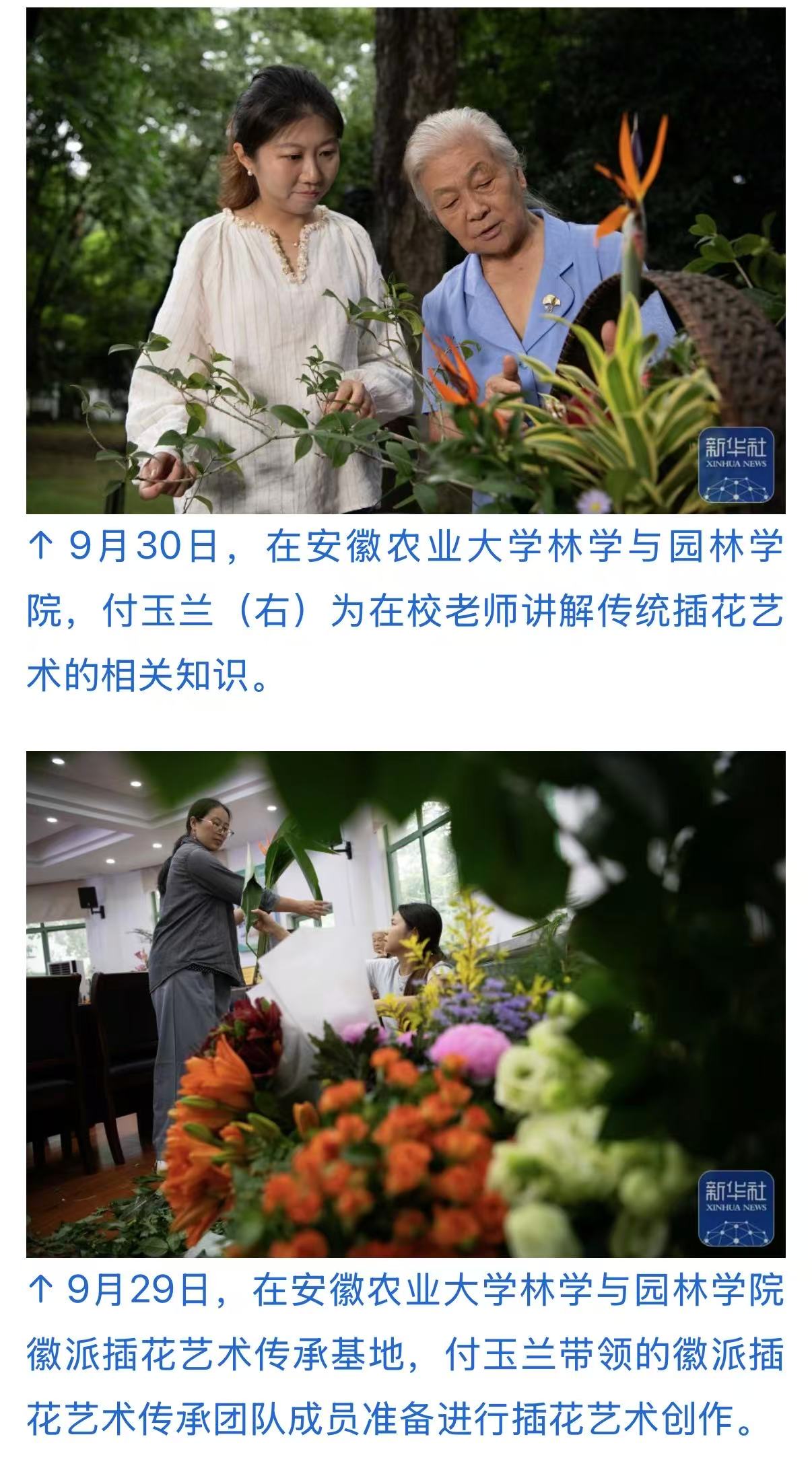 9月29日,在安徽农业大学林学与园林学院徽派插花艺术传承基地,徽派插花艺术传承团队成员进行插花艺术创作。