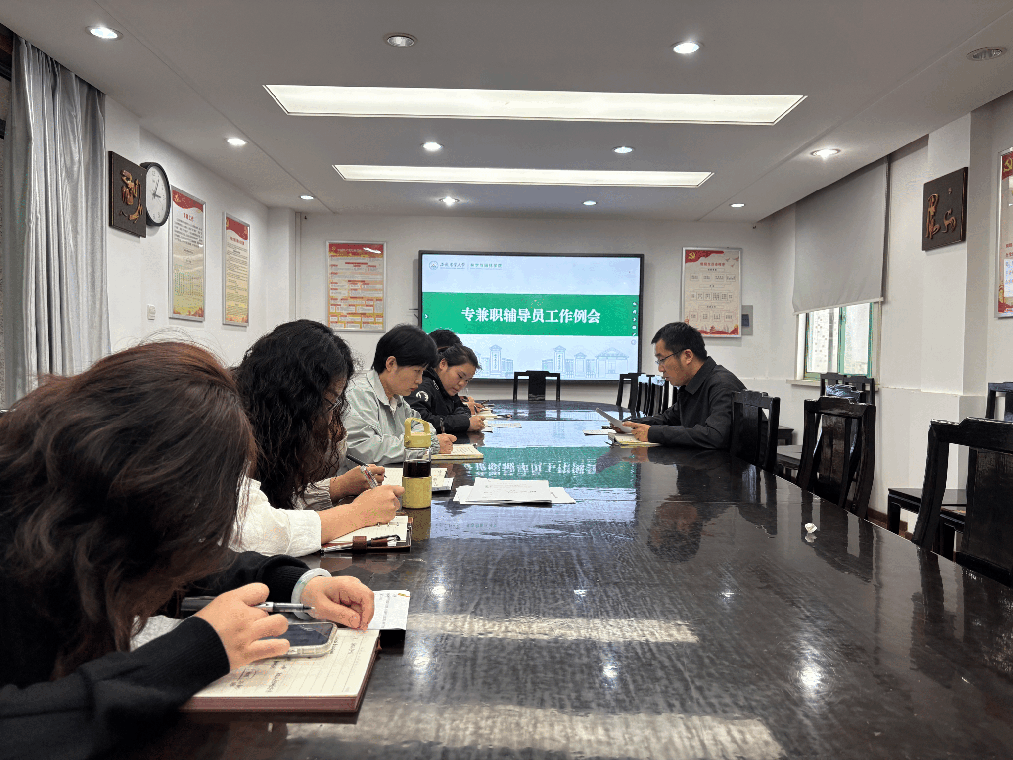 本网讯 10月15日下午,林学与园林学院在林学楼二楼会议室召开专兼职辅导员工作会议,就近期学生工作进行安排部署。学院全体专兼职辅导员参加会议,会议由学院党委副书记陈枫主持。