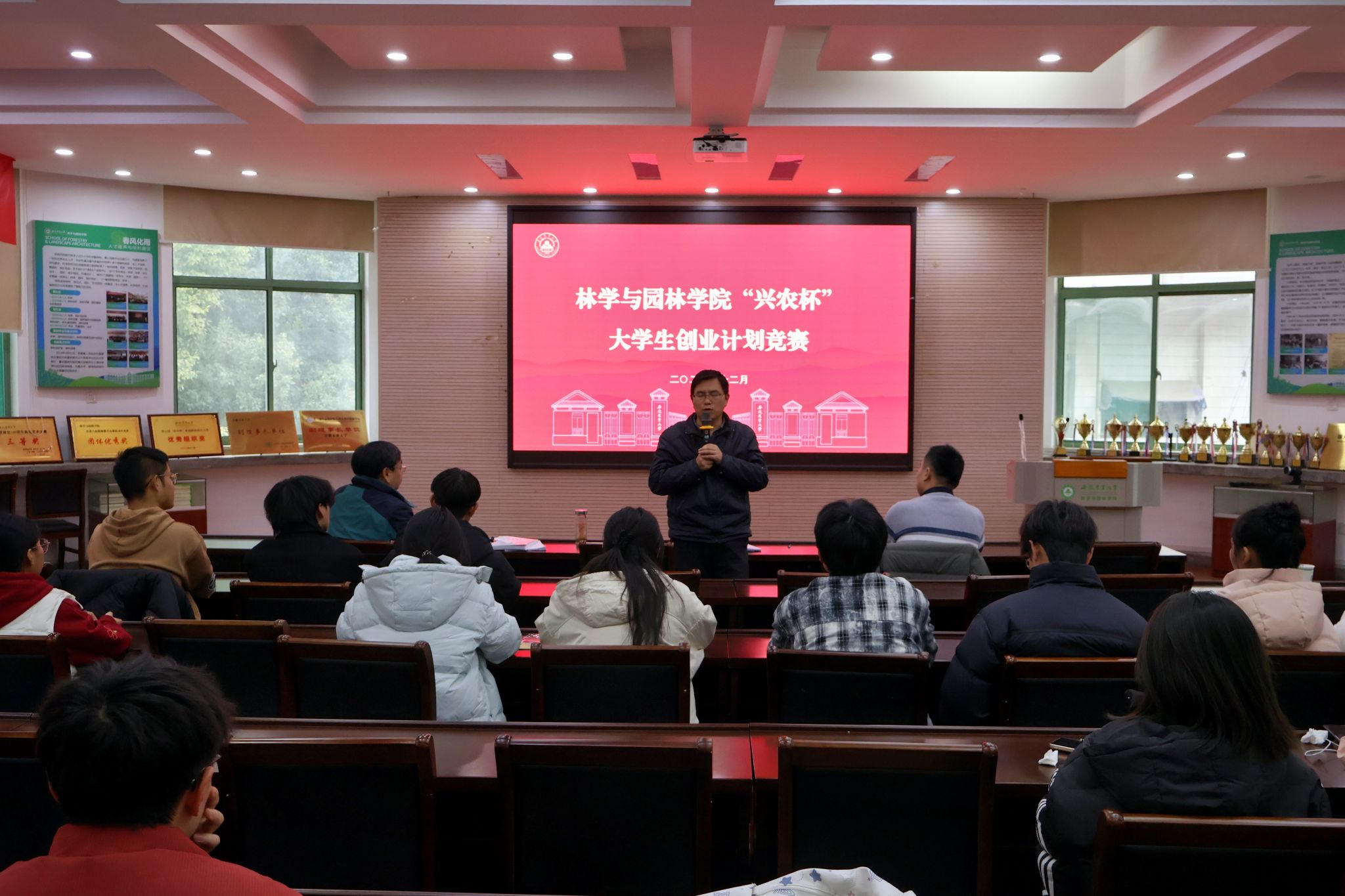 本网讯 12月12日下午,林学与园林学院“兴农杯”大学生创业计划竞赛决赛在林学楼二楼报告厅成功举办。校创新创业学院常务副院长兼教务处副处长张志平、校真菌生物技术教育部工程研究中心主任王滨、以及林学系教师王玉龙担任比赛评委。