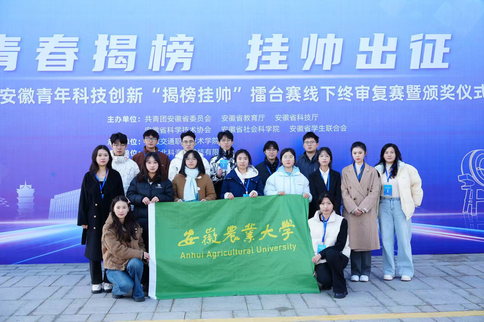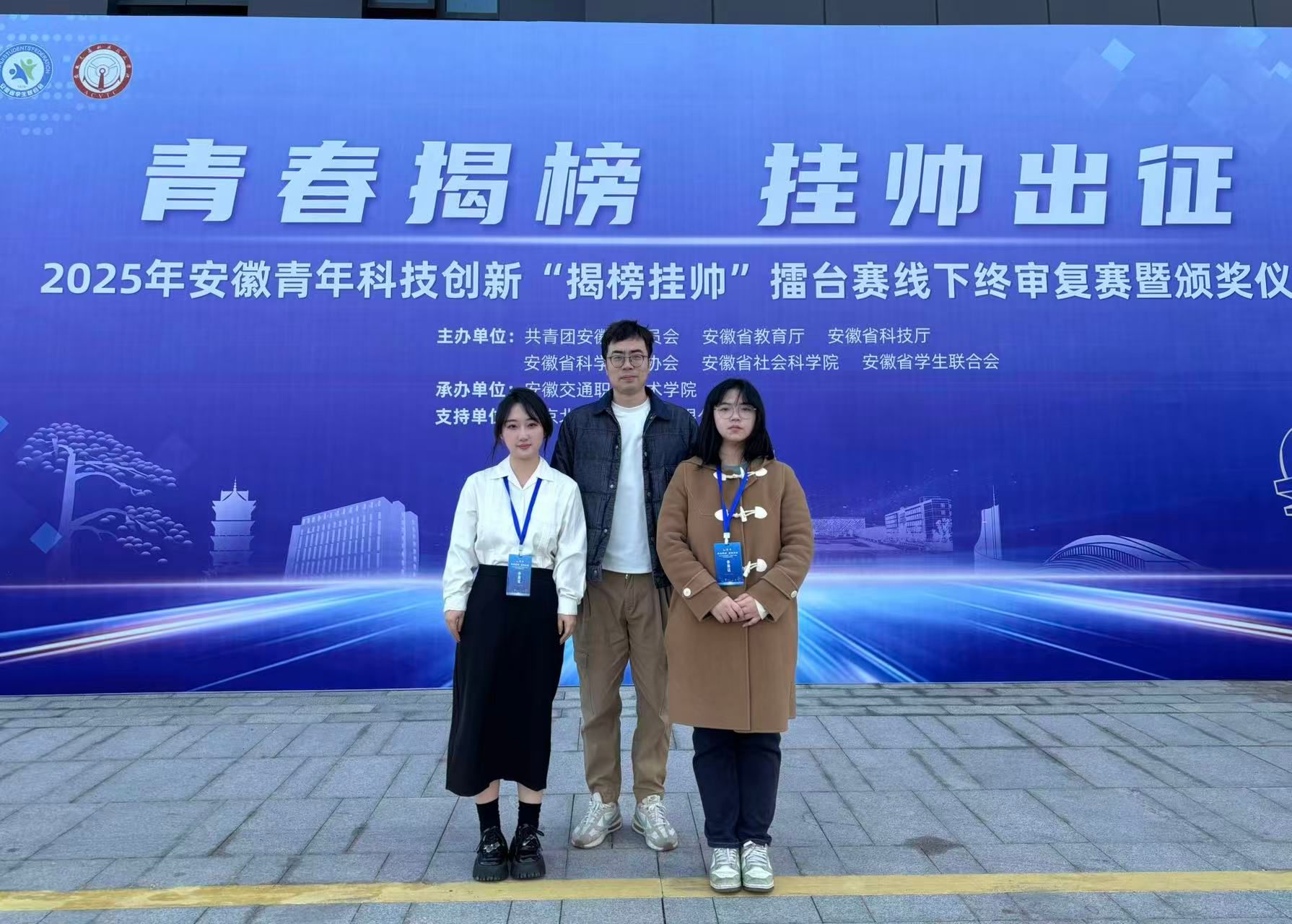本网讯 12月7日至8日,由团省委、省教育厅、省科协、省社科院、省学联共同主办的2025年度安徽青年科技创新“揭榜挂帅”擂台赛线下终审决赛暨颁奖仪式在安徽交通职业技术学院举行。经过激烈角逐,由我院环境设计系主任殷石老师指导,学生团队完成的《“固镇有礼”文创产品设计》项目从391支参赛团队中脱颖而出,荣获大赛二等奖,展现了我院在创新人才培养与设计实践融合方面的扎实成效。