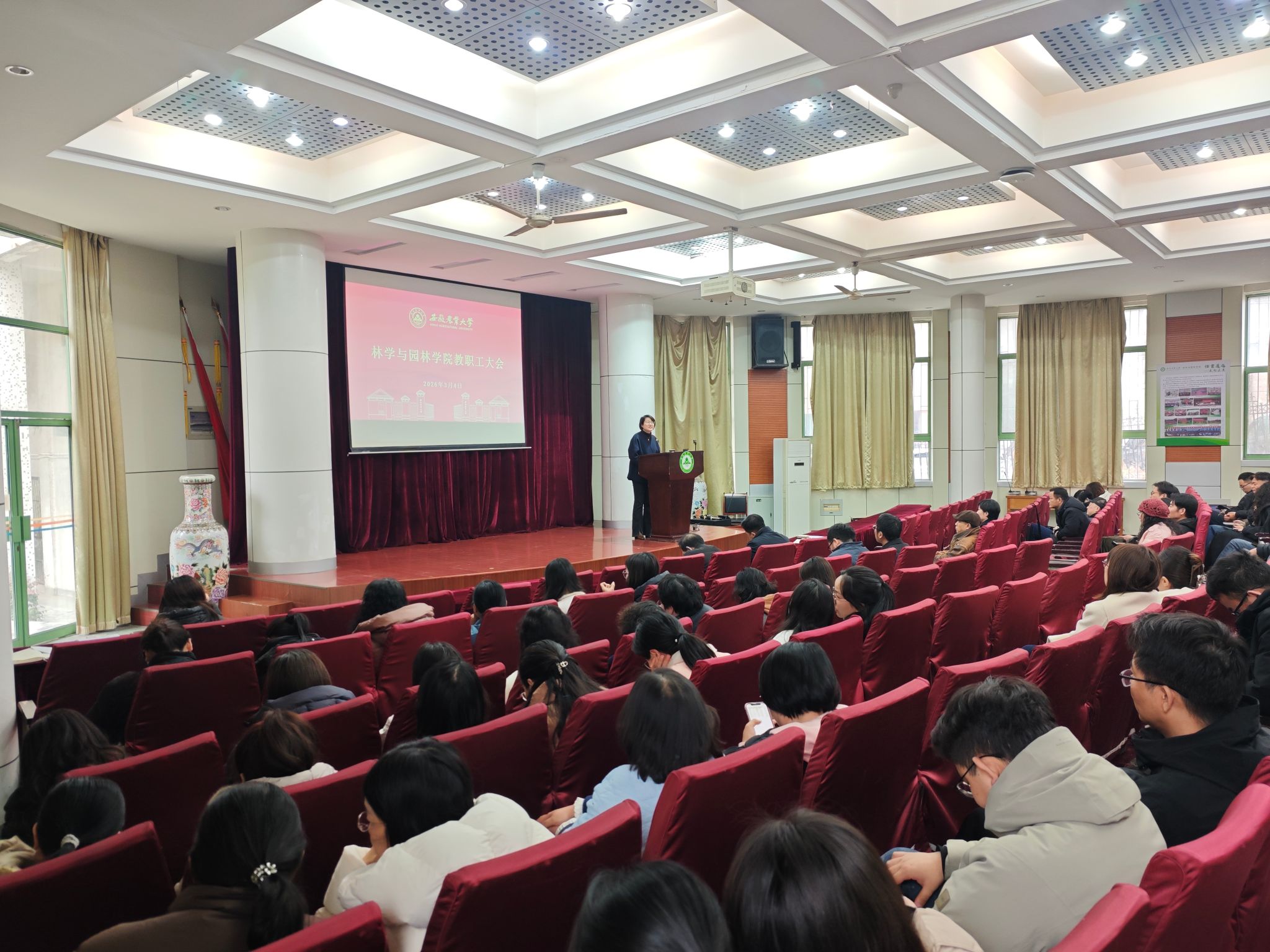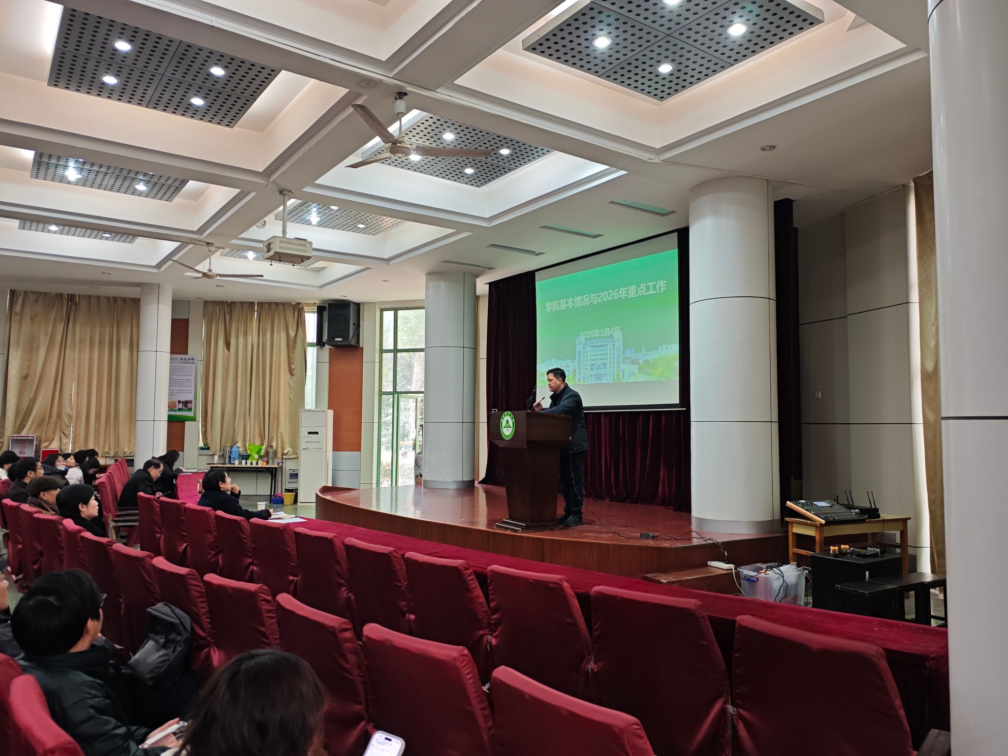 本网讯 3月4日,林学与园林学院在林学楼报告厅召开新学期全体教职工大会,谋划部署新学期重点工作任务,明确发展方向、凝聚奋进力量。学院领导班子成员、全体教职工参加会议,会议由院党委副书记陈枫主持。