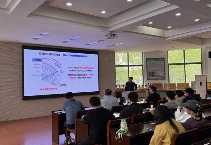 寇亮研究员以《根系生态学理论:从性状到过程》为题,系统阐述了其在根系生态学领域多年的研究成果。报告围绕根经济空间多元理论框架、根系性状功能及其获取—防御—分解反馈循环的构建与验证展开,并从根系迭代效应的角度深入介绍了根系动态过程的最新进展。报告引发了在场师生的热烈讨论与交流。