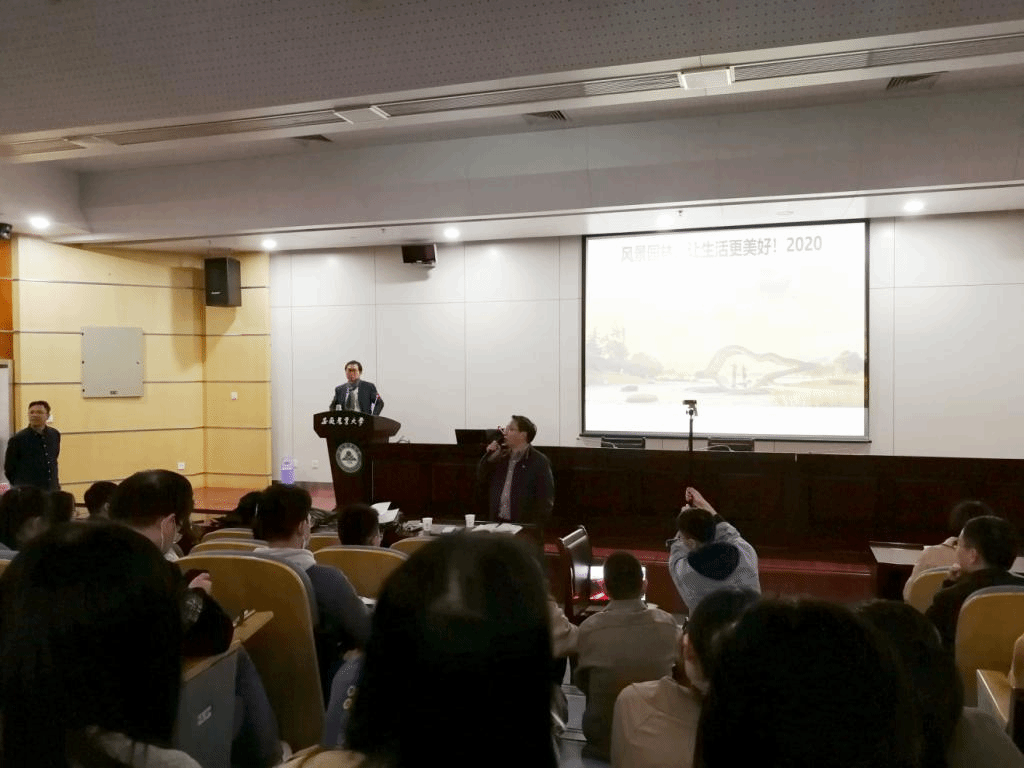 下午在图书馆2号报告厅,刘滨谊教授以《从公园城市看风景园林的未来》为题做学术讲座。讲座由林学与园林学院院长刘盛全教授主持,报告会上,刘滨谊教授结合自身多年来从事教学、科研和管理的经历以及近期对公园城市和风景园林之间的一些新思考,从未来公园城市的地位、规划内容、规划方法等多方面探究风景园林的未来并将自身参与过的项目进行了深入浅出的论述和讲解。学术报告进行了2个多小时,来自我院与合肥工业大学、安徽建筑大学、安徽风景园林学会、安徽城乡规划学会的近两百名师生认真聆听,并在报告后与刘教授进行了深入的互动交流。(朱萌 通讯员:徐玉品)