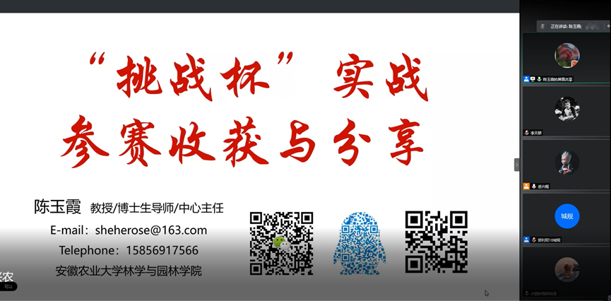 本网讯2月24日晚,林学与园林学院举办“兴农杯”大学生课外学术科技作品竞赛线上培训分享会。学院邀请有多年丰富指导参赛经验的陈玉霞教授开展培训。培训会由学院党委副书记谈应权主持,项目指导老师、学院团委老师、专兼职辅导员以及学院各年级专业学生等近200人参加。