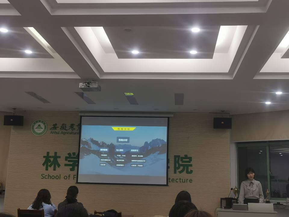 通过前期的宣传、策划和培训,从报名的选手中遴选出15位同学参加学院答辩赛。学院比赛设置有PPT展示和必答题环节。PPT 展示环节,参赛学生明确制定职业目标,从社会环境、家庭支持等多角度分析个人优劣势,设计目标实现路径。选手在汇报和回答问题时思路清晰、表达流畅,展现了大学生优秀的辩论能力,体现了大学生良好的求职风貌。通过激烈的角逐,2019级园林专业钱悦和2019级城乡规划专业李辛瑶获得一等奖。