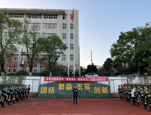 本网讯 为庆祝中国共产党成立100周年,学习贯彻习近平总书记在庆祝中国共产党成立100周年大会上的重要讲话精神,林学与园林学院于11月8日早上7点,在校第一运动场,举行“请党放心,强国有我”为主题的升旗仪式暨青年之声·我与书记面对面。校党委武装部、学工部部长姚莉、副部长刘柳,程玉磊,学院党政领导班子、全体专兼职辅导员、班主任,学院全体学生参加了此次升旗仪式。仪式由林学与园林学院专职辅导员胡先业主持。