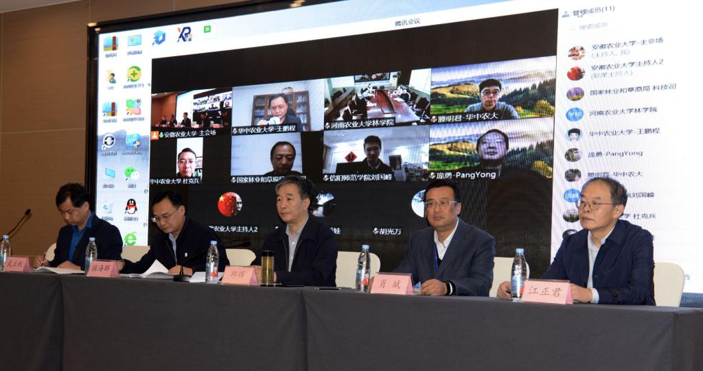 应疫情防控要求,此次会议采用线上线下结合的方式举行。出席本次会议的领导和专家有:国家林业和草原局科技司一级巡视员厉建祝;安徽省林业会理事长邱辉;中国科学院武汉植物园馆长胡光万;中国林业科学研究院科技处副处长庞勇;安徽省林业科技推广总站站长肖斌;安徽省林学会常务理事会、大别山地区市县级林业局和创新联盟发起及参加单位的线上和线下代表,共100余人。安徽农业大学副校长操海群出席会议并致辞,会议由林学与园林学院院长刘盛全主持。