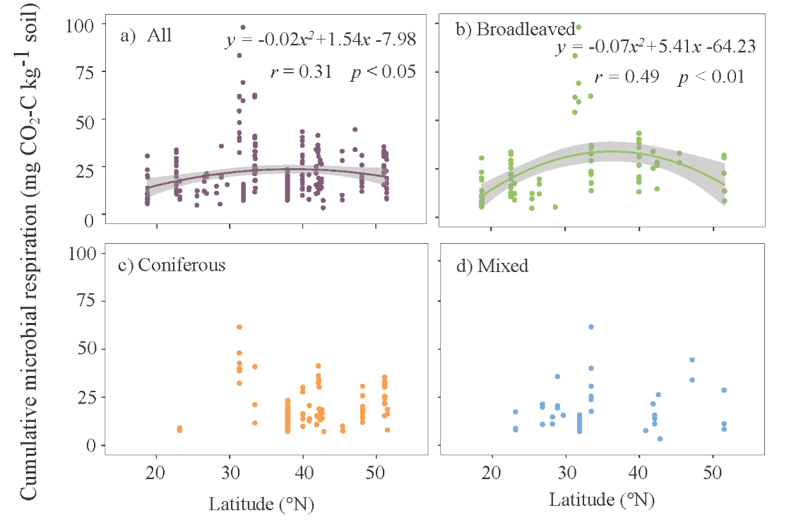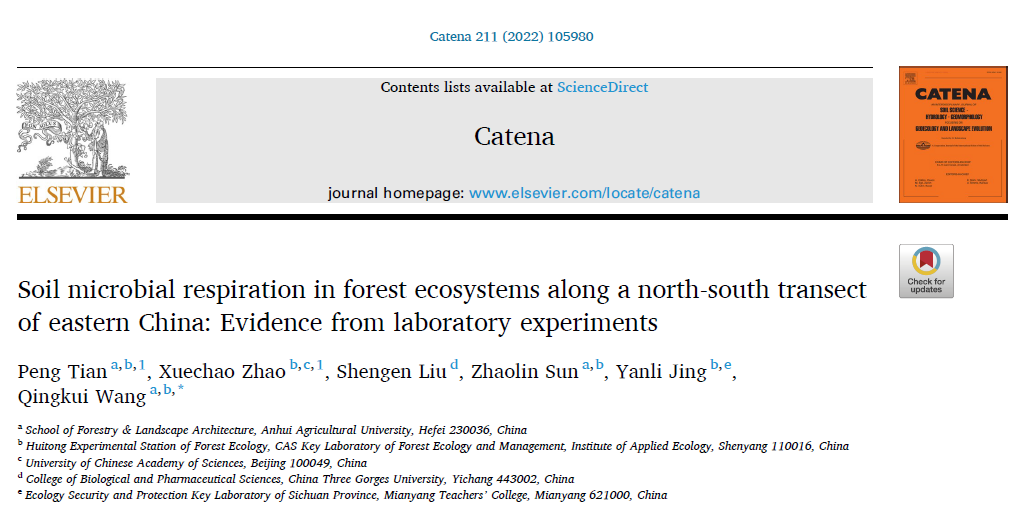 本网讯 近日,林学与园林学院森林土壤生态与全球变化课题组在中科院一区top期刊Catena发表题为“Soil microbial respiration in forest ecosystems along a north-south transect of eastern China: Evidence from laboratory experiments”的科研论文,系统阐述了土壤微生物呼吸沿中国东部南北样带的空间异质性及其调控因子。