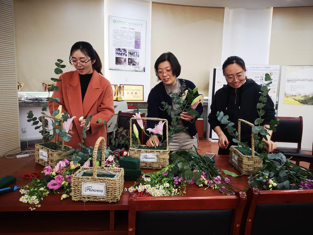 本网讯 为迎接“三八”国际妇女节,进一步团结关心女教职工,凝聚巾帼力量,让学院女教职工们拥有一个健康、和谐、温馨的节日,3月8日,林学与园林学院工会开展以“与美丽相伴、携幸福同行”为主题的插花活动。