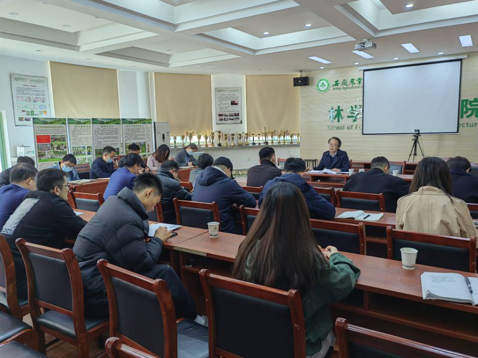 本网讯 4月2日上午,林学与园林学院在林学楼二楼报告厅召开专兼职辅导员疫情防控专题会议,全体专兼职辅导员参加。学院党委书记江正君主持会议。