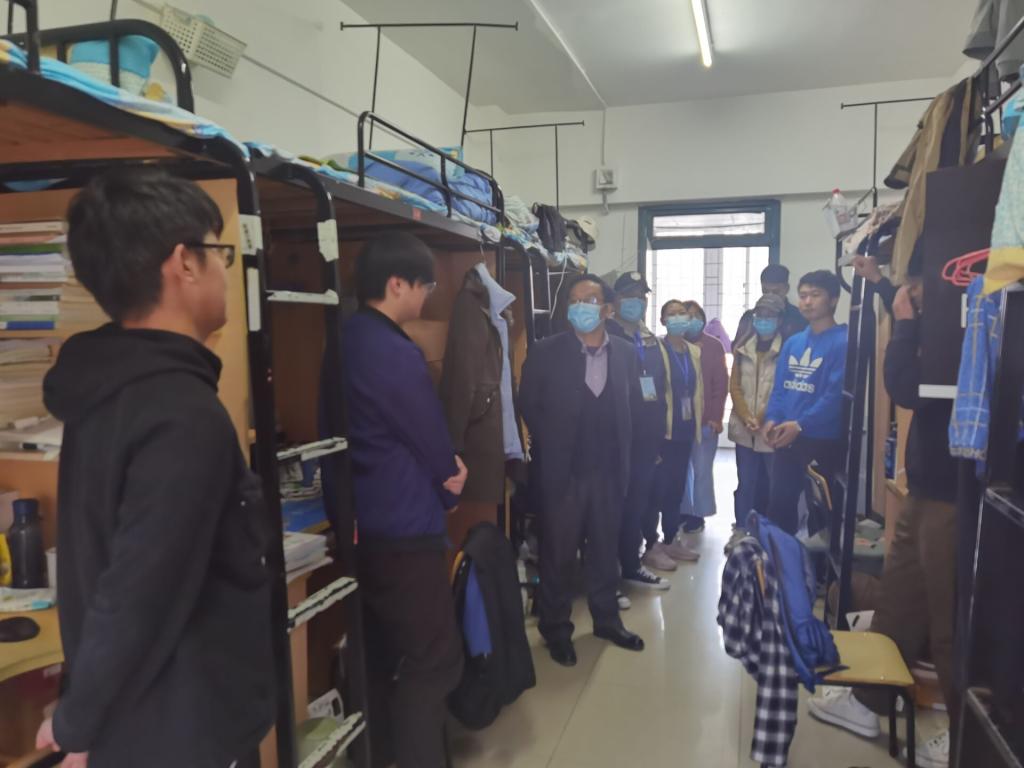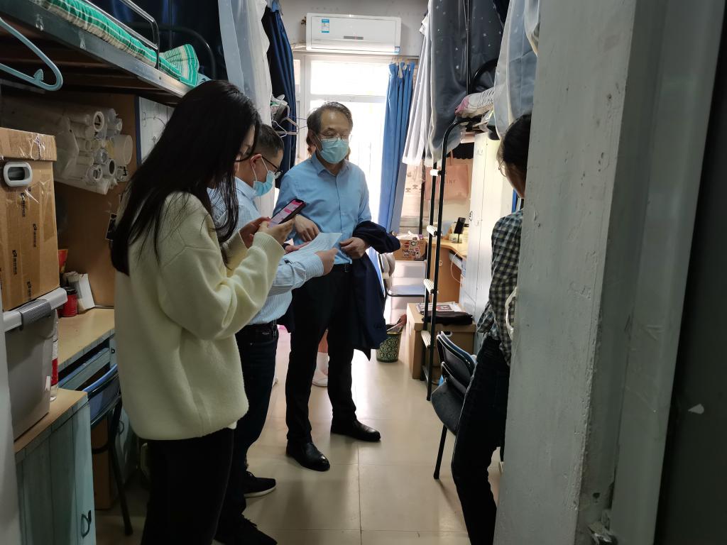 在走访中,学院领导与同学们进行了亲切交谈。在研究生实验室,在听取了实验室负责人对实验室消毒通风情况、学生体温检测和实验室管理措施的介绍后,叮嘱同学们,要严格遵守校园相关管理规定和实验室安全管理制度,勤洗手、勤通风,积极调整心态,以良好的心态投入科研实验中。在宿舍,除了询问同学们用水用电和学习情况外,还不忘叮嘱同学们要注意疫情防控,不要去人多聚集的地方;加强体育锻炼,保持身心健康;积极响应学校号召,服从学院安排。