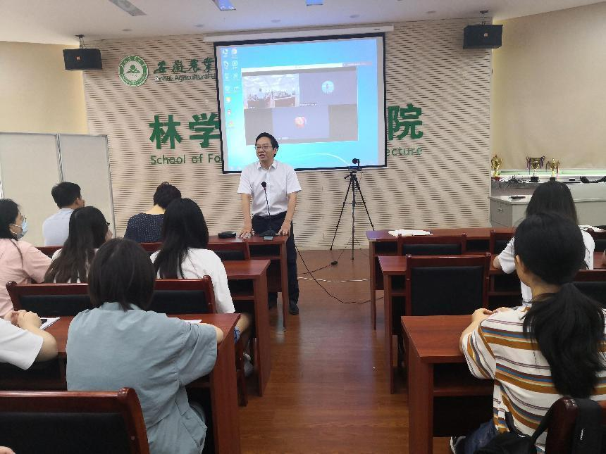 本网讯 2022年6月8日,2021级中外林学(3+1)专业学习动员会在林学与园林学院二楼报告厅举行。林学与园林学院院长刘盛全、副院长张龙娃、国际交流合作处副处长张文静、林学系主任王滨、林学系专业教师万芳芳博士、张艳萍博士、21级中外林学班主任岳兴程及全体同学参加了动员会。动员会由林学与园林学院副院长张龙娃教授主持。