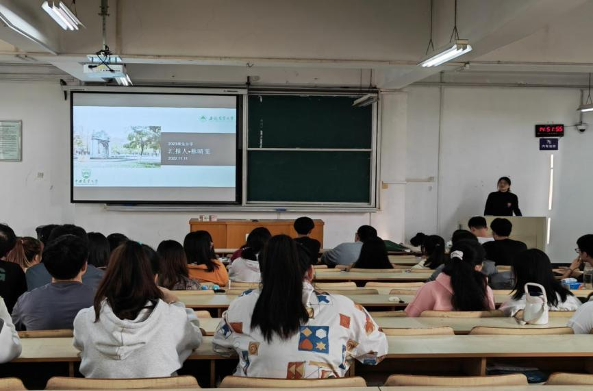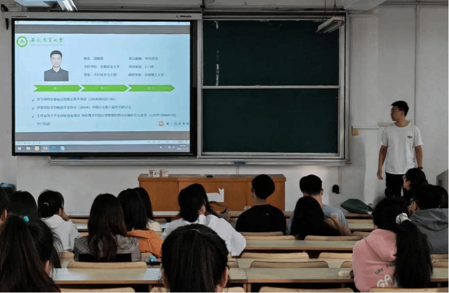 本网讯 11月11日,我院2020级木材科学与工程专业开展“优秀学长学姐进班级”学习交流主题班会,2019级木材科学与工程专业梁殿恩、蔡晴雯两位同学为同学分享了学习和成功推免经验,2020级木材科学与工程专业辅导员吕黄飞老师主持班会,该专业全体同学参加。