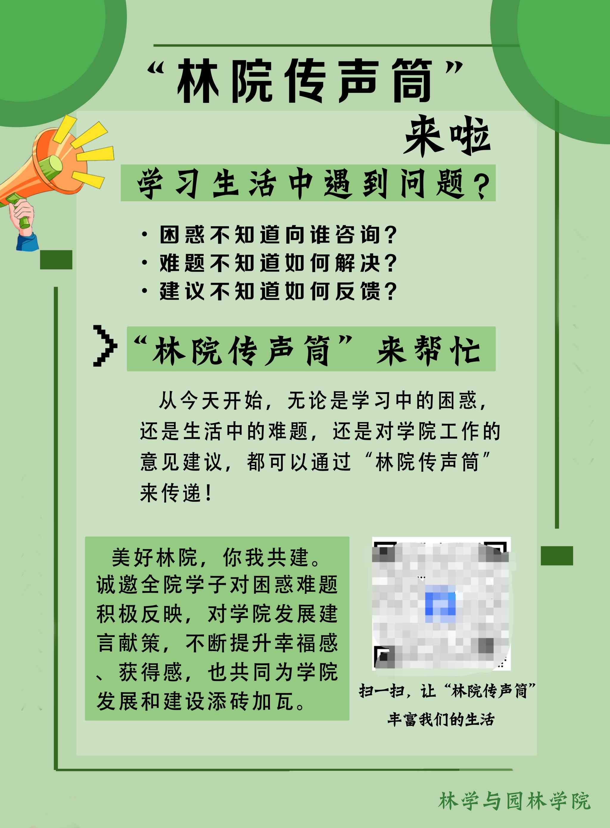这是林学与园林学院开展“一键直达”师生“零距离”工作机制的真实写照。为了畅通学生反映问题的渠道、及时了解学生诉求、第一时间解决学生难题,学院从顶层设计着手,深化工作举措,全面打造师生互联互通机制,切实为学生解难事、办实事。