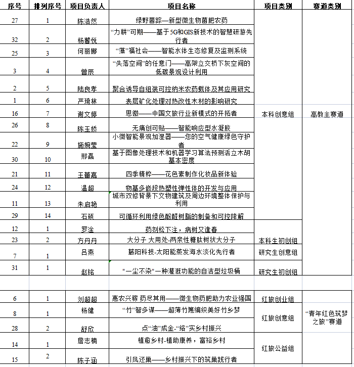 本次比赛经学生申请,共计收到41项份参赛作品,其中有项目策划书32份,无项目策划书9份,依据学校参赛要求以及评审专家综合评审,现将结果公示如下: