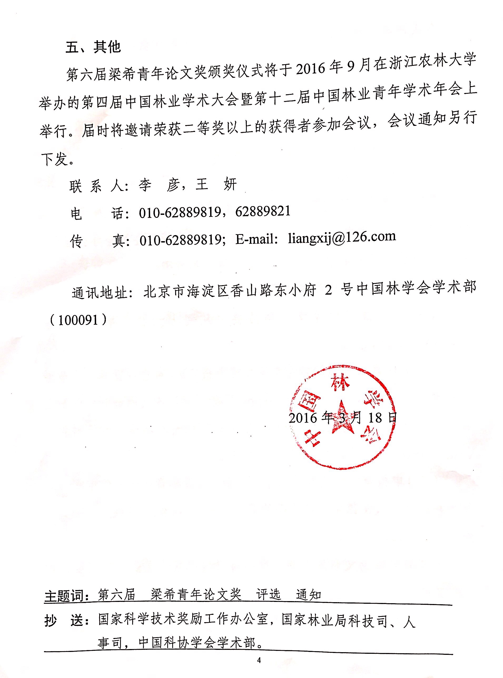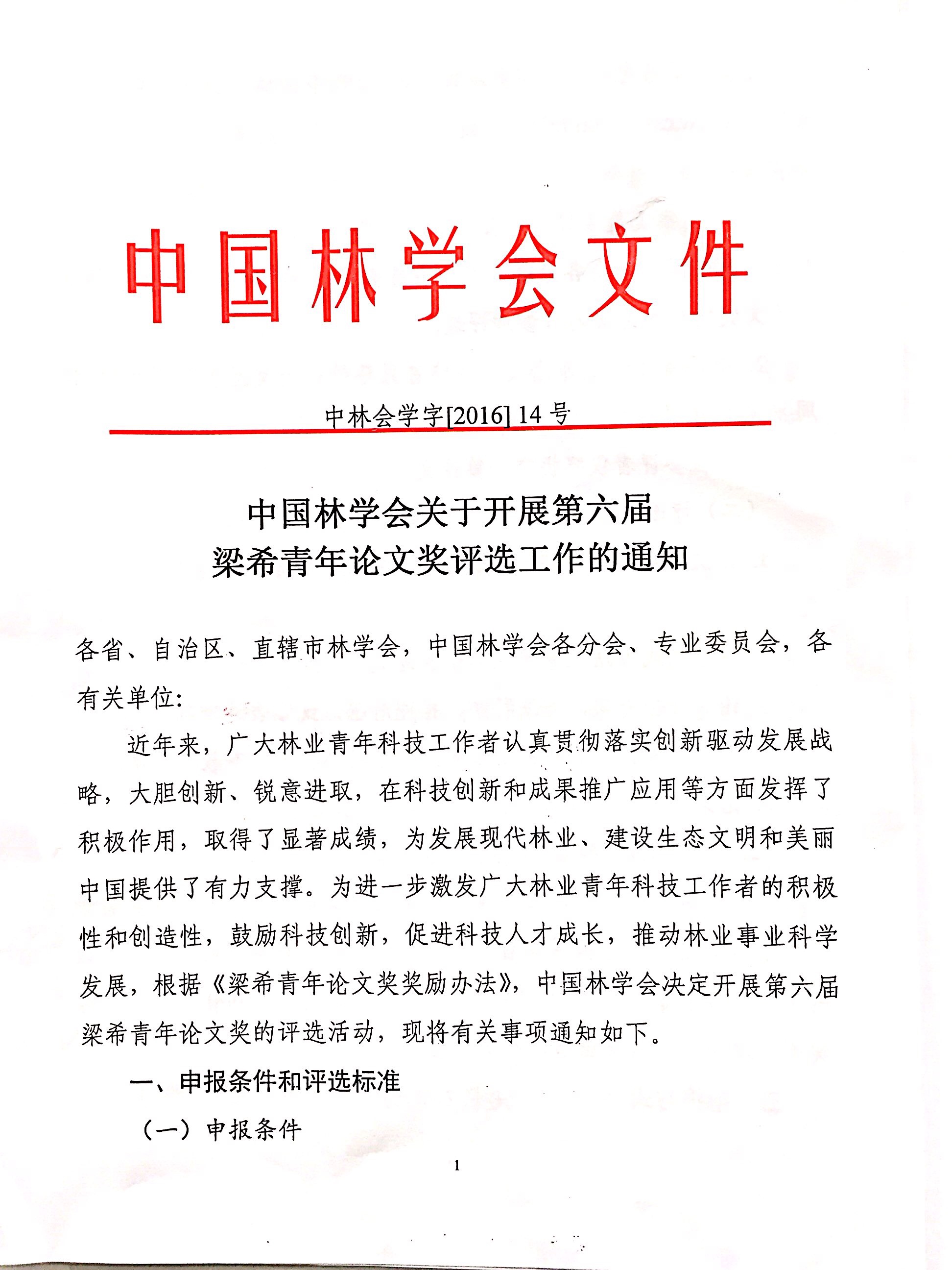 上一条:中国林学会关于开展第七届梁希林业科学技术奖评选工作的通知 下一条:安徽农业大学2016年博士研究生招生简章
