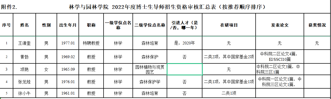 根据《安徽农业大学研究生指导教师岗位管理办法》(校研字〔2020〕18 号)、《林学与园林学院2022年博导招生资格年度审核标准及方案》有关要求,经林学与园林学院讨论、党政联席会议通过,确定2022年度我院博导招生资格排序,现予以公示(详见附件):