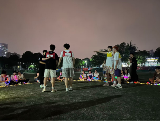 活动现场,同学们坐着围成一圈点点灯光营造了满满的氛围感。团建的第一环节是团体合作“撕名牌”活动,在此活动中同学们积极报名参加,在为自己的班级奋力而战的同时也秉持着“友谊第一”的原则。参赛的同学都竭尽全力,赛出了风采,他们动作敏捷,行动迅速,将“快,准,狠”三个字表现得淋漓尽致,不由引得周边同学喝彩欢呼,也使得现场的气氛达到了高潮。