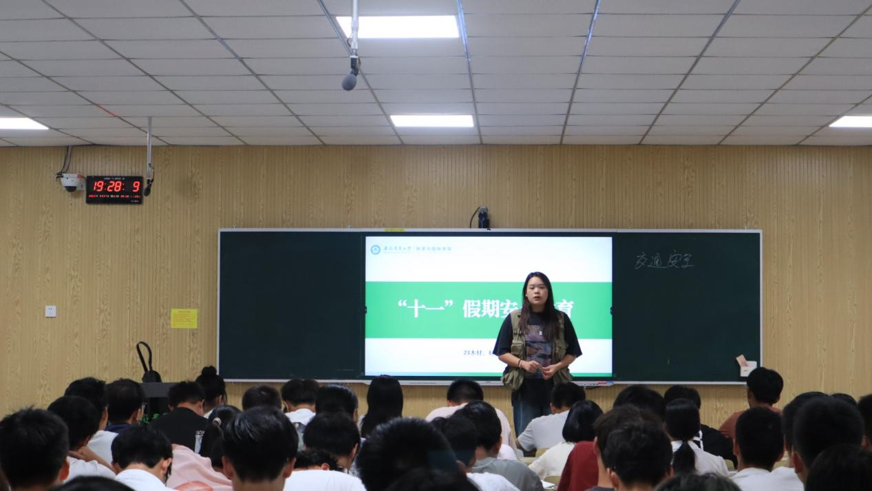 本网讯 随着“十一”假期的到来,为确保假期期间学校秩序以及同学们的安全,9月27日,23木材科学与工程专业和材料科学与工程专业同学共同开展了“十一”假期安全教育主题班会。