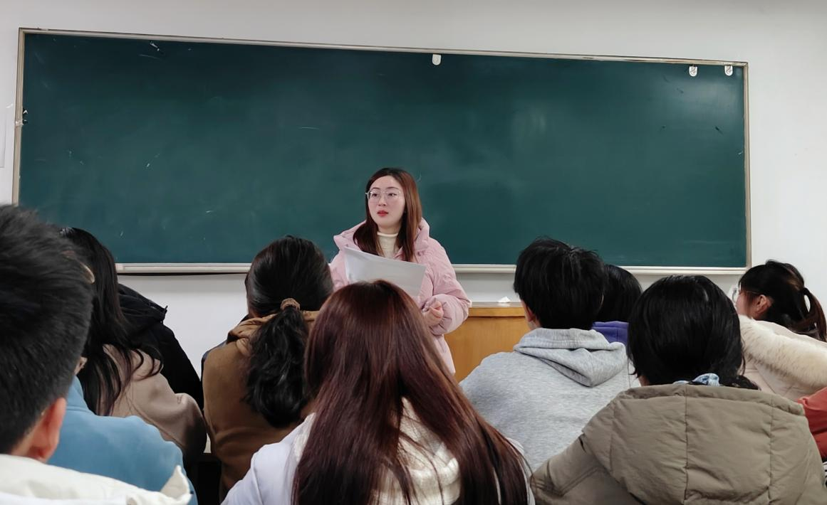 随后,胡老师对上学期的期末成绩作出了重要总结。上学期的期末考试已告一段落,胡老师对于取得优异成绩的同学进行表扬,希望能够再接再厉;而成绩不太理想的同学,也不要气馁,大一上学期是一个适应的过程,只要肯努力就能实现自己的飞跃,学习重在当下,功在平时。学习是大学生活的主旋律,大家需多多重视。