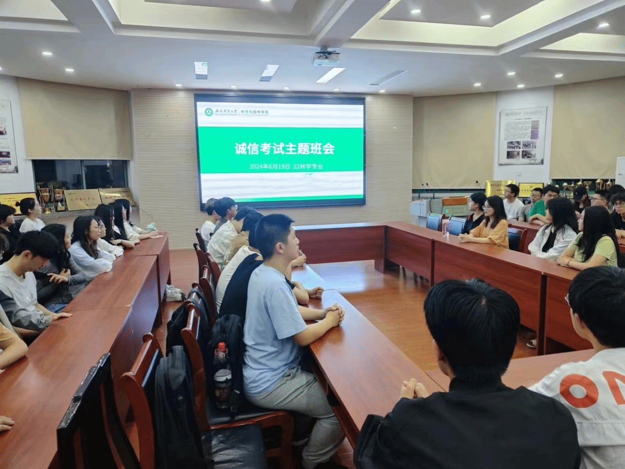 6月12日,22林学专业在林学楼二楼报告厅开展诚信考试的主题班会,22林学全体同学参加,班会由辅导员胡先业主持。
