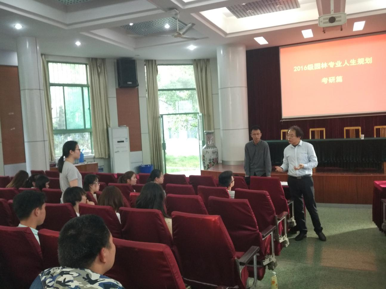 江书记以“园林专业考研”为主线,分享了自己当年作为一名园林专业学生在安农的求学经历,并就当前园林专业在国家政策以及社会需求下的发展趋势,给同学们分析了未来园林专业的考研方向和就业前景。江书记演讲完毕后,同学们踊跃发言,江书记一一解答了同学们关于专业方向选择、考研、考职等方面的疑惑,增强了同学们的专业自信心,坚定了同学们在园林专业上进一步完善自我、成长成才的决心。