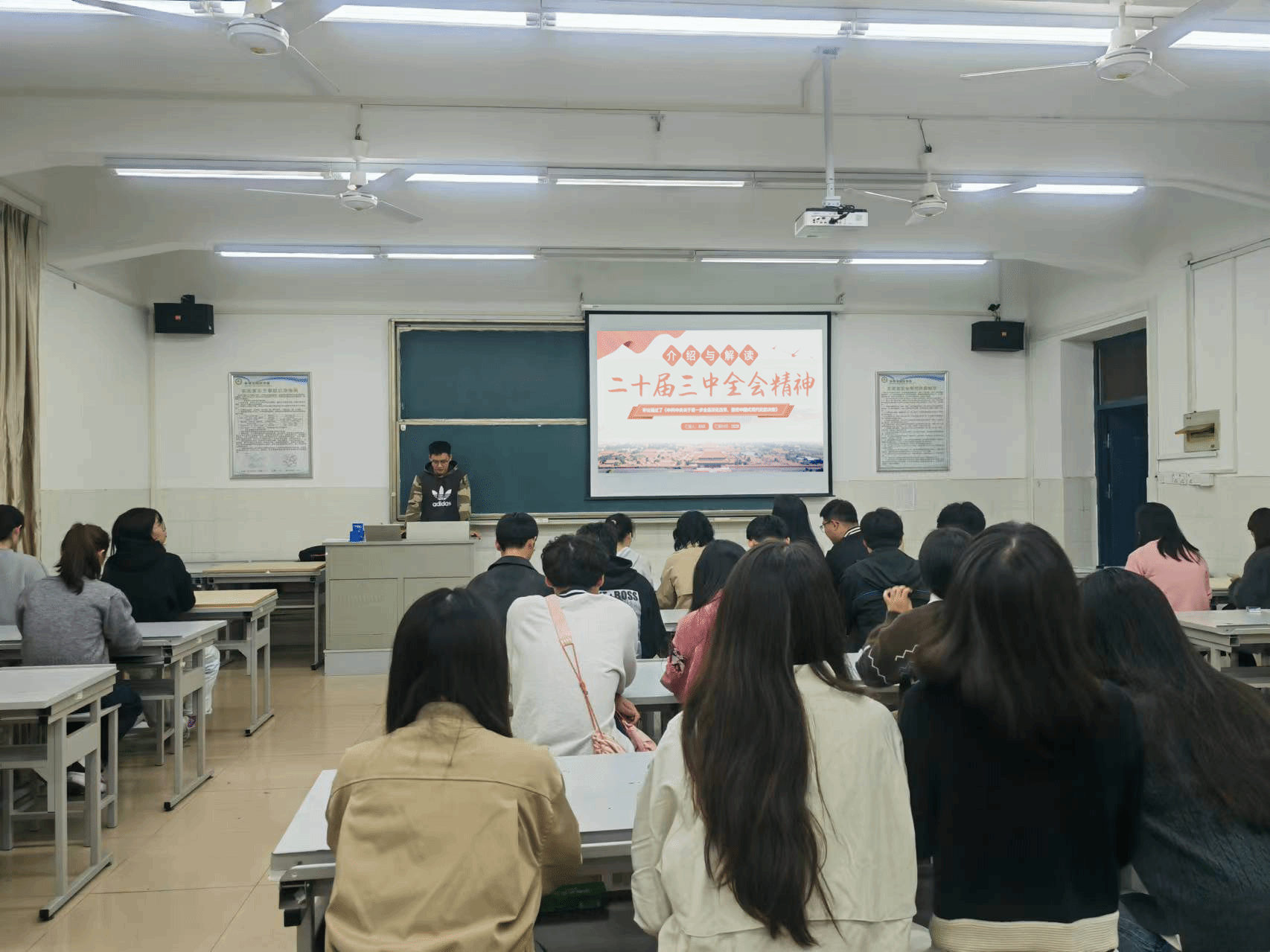 10月25日晚上,2022级林学硕士2班在化学楼102召开了以“党的二十届三中全会精神宣讲”为主题的团日活动,团支书李晨亮主持,全体班级同学参加此次活动。