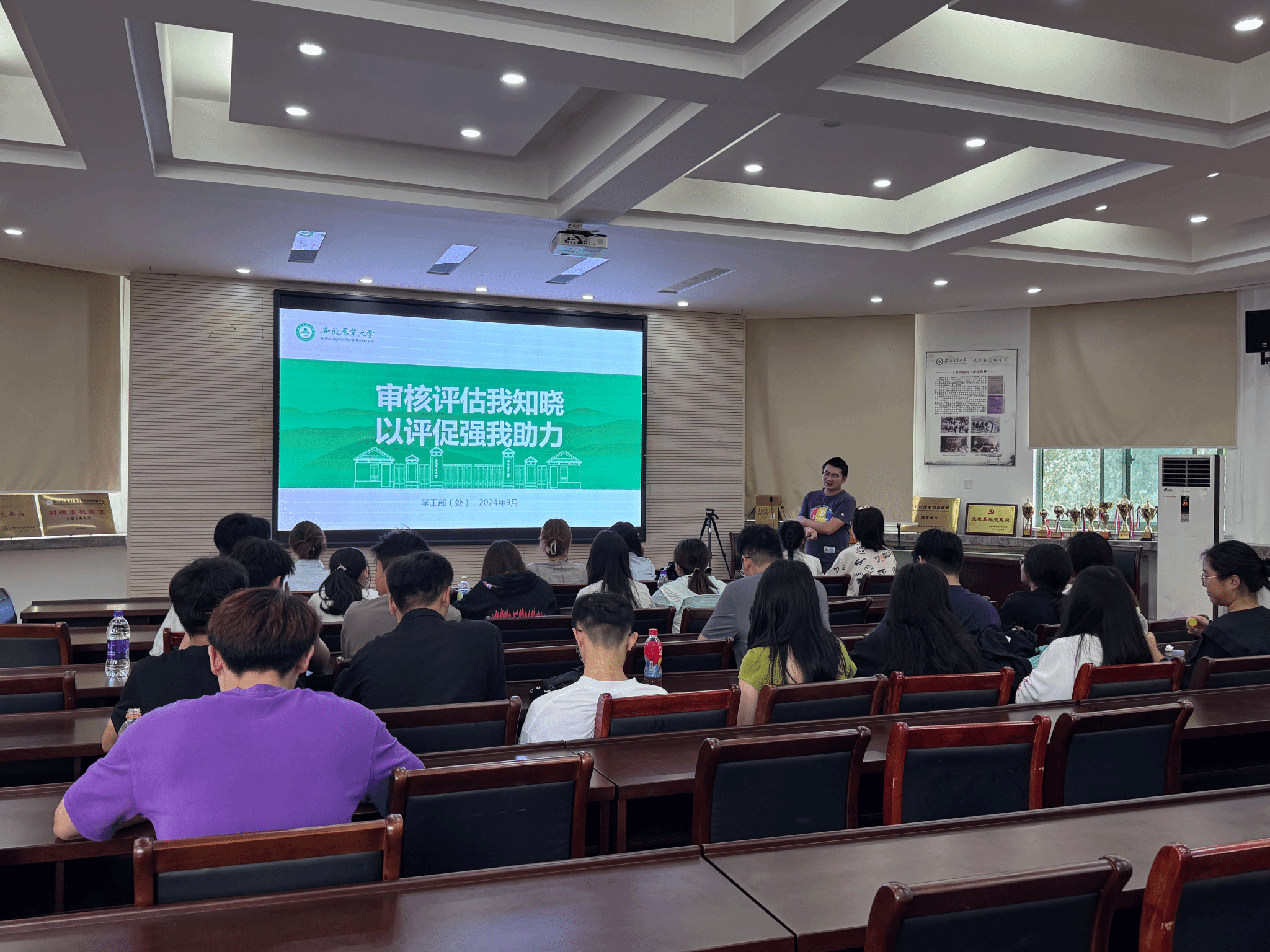 本网讯 为更好地迎接学校本科教育教学审核评估工作,让同学们深入了解相关内容并积极参与其中,21林学专业于9月26日在林学楼二楼报告厅召开了本科教育教学审核评估主题班会。本次班会由辅导员岳兴程主持,21林学专业全体同学参会。