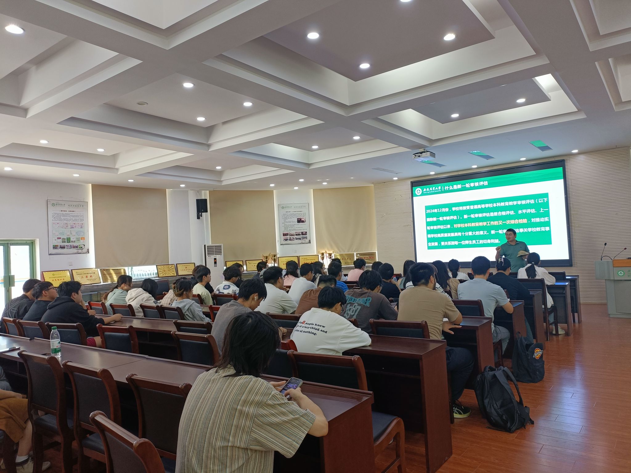 本网讯 为更好地迎接学校本科教育教学审核评估工作,让同学们深入了解相关内容并积极参与其中,21中林专业于9月25日在林学楼二楼报告厅召开了本科教育教学审核评估主题班会。本次班会由辅导员岳兴程主持,21中林专业全体同学参会。